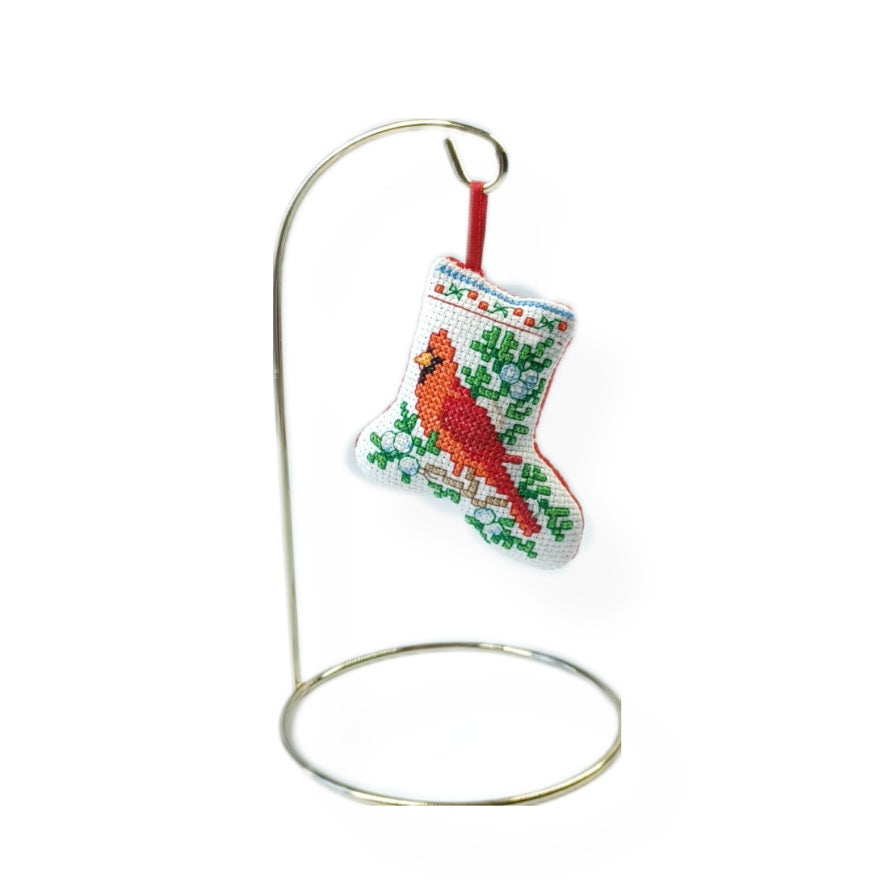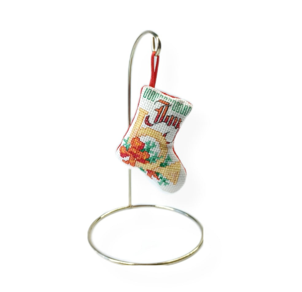 Beautifully hand crafted and hand stitched mini stockings in 3 vintage/traditional designs. Made from a counted cross stitch design with coordinating felt backing hand sewn in to Mini stocking Christmas tree decoration.